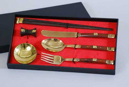 CH.0302 Spoon folk kife and chopsticks in box set for 1 person.